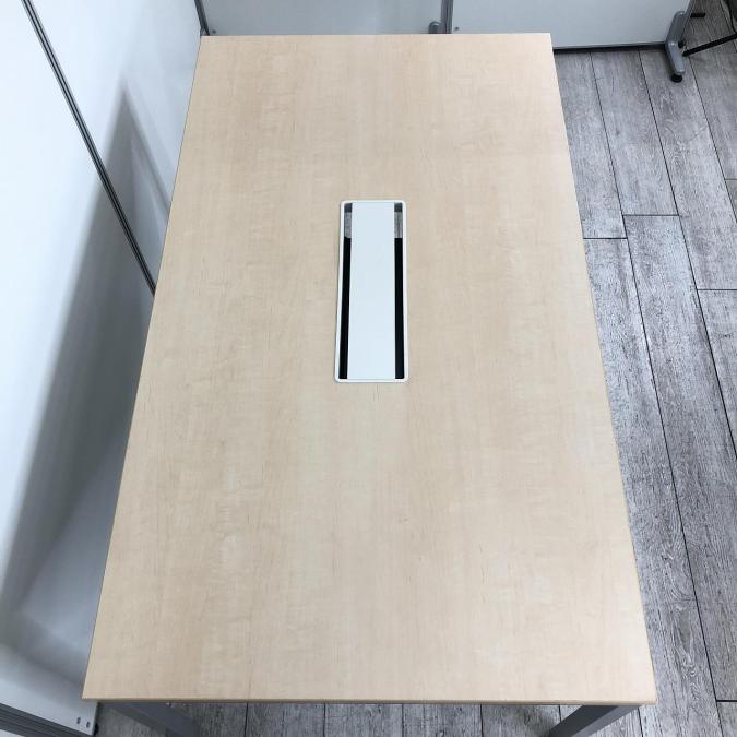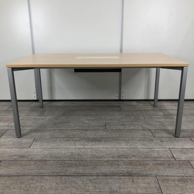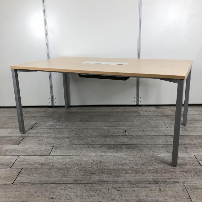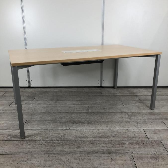 【デスクエンドにもフィットする高さ720㎜!】■ウチダ(UCHIDA)ノティオ(notio)シリーズ ミーティングテーブル ■スクエア天板 4本脚タイプ アジャスタータイプ ■横幅1600×奥行き900㎜ ■ナチュラル天板×シルバー脚【配線口付き】- 福岡西店
