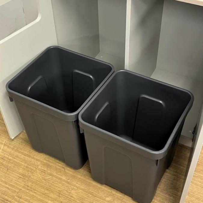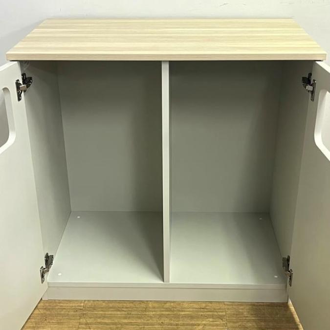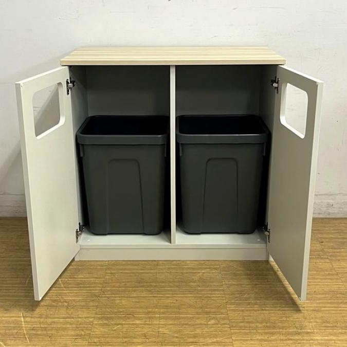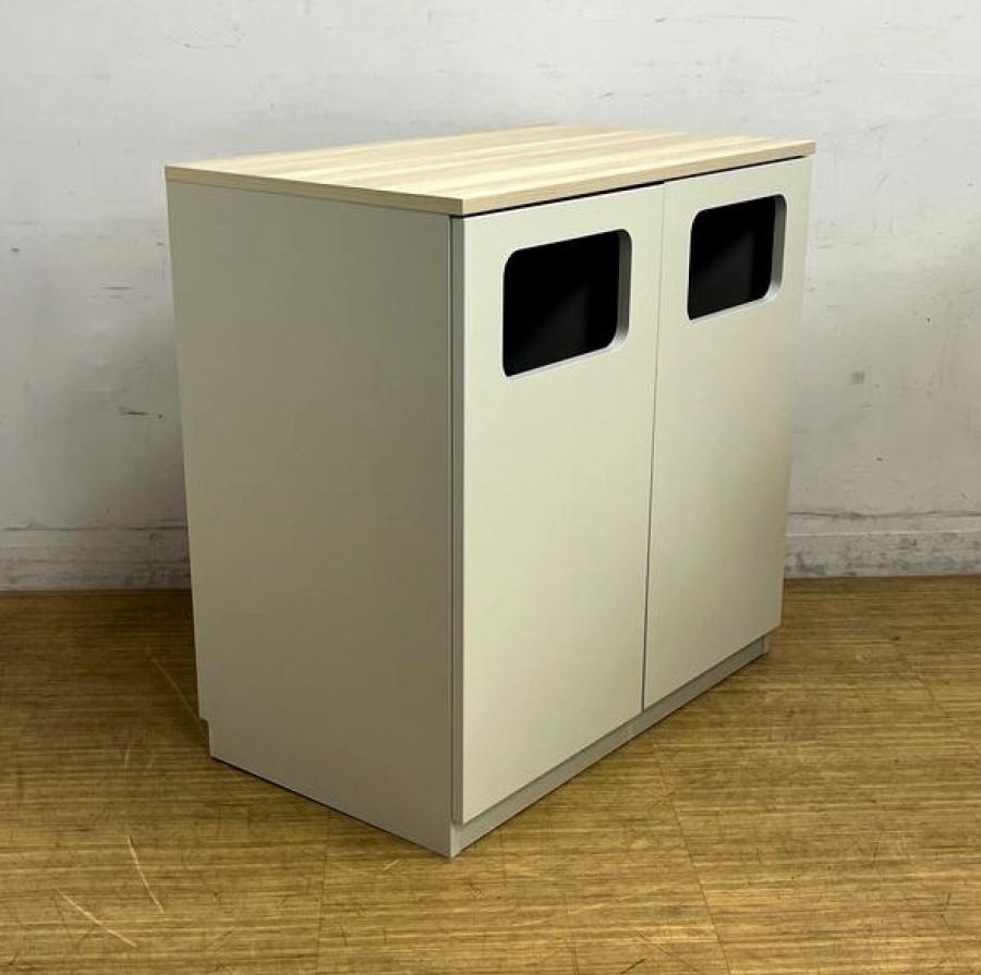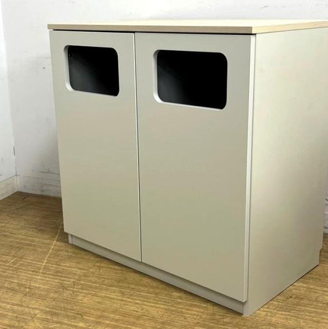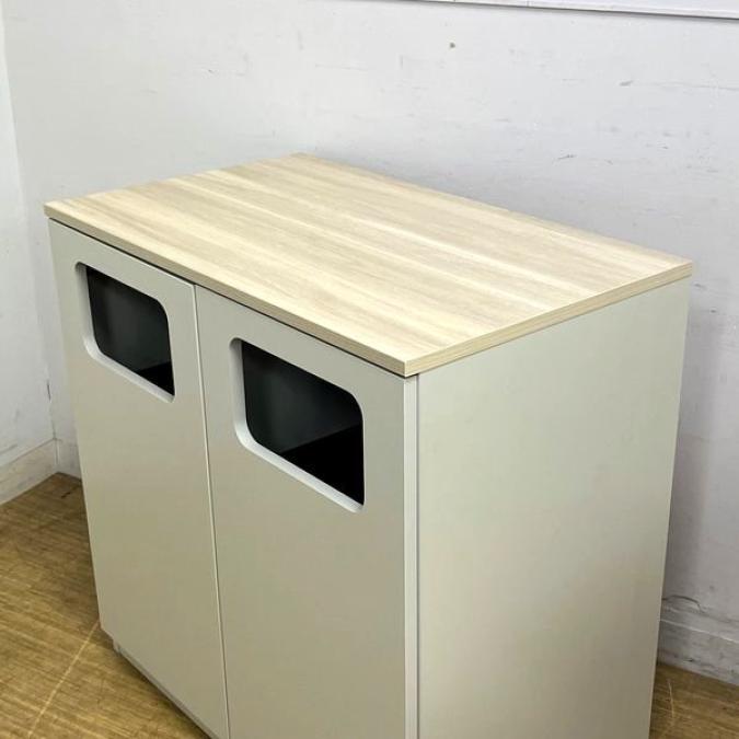 【2023年製の状態良好品】イトーキ ノットワークシリーズ 分別キャビネット(ロータイプ) ダストボックス 本体グレーホワイト×天板アモナアカシア- 名古屋千種店