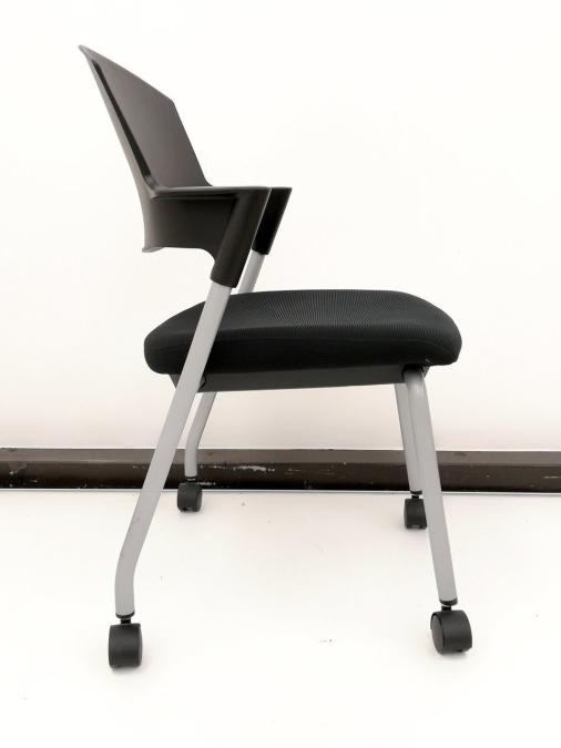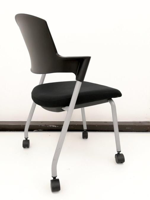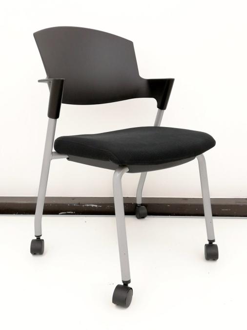 【シンプルスマートなスタッキングチェア!分厚いクッションで長時間でも快適な座り心地!】■スタッキングチェア 肘付ミーティングチェア ■固定肘 ■キャスター付 ■ブラック ■背面樹脂/コクヨ(KOKUYO/プロッティ