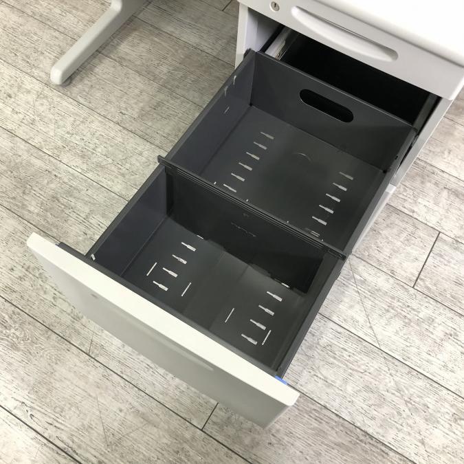 中下段の引き出しは、A4サイズ対応で書類やファイルが収納可能。