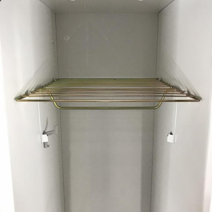 - 完備鏡、ネクタイ掛け、傘立て、網棚、フック等が全て完備されている。