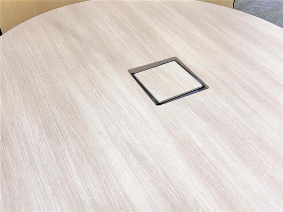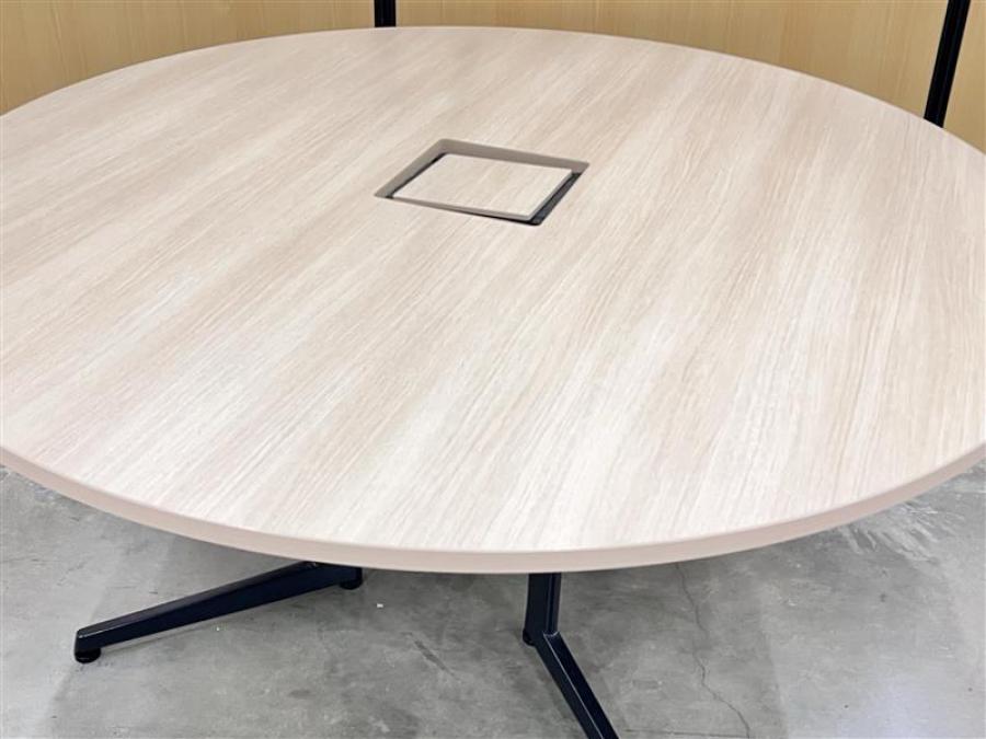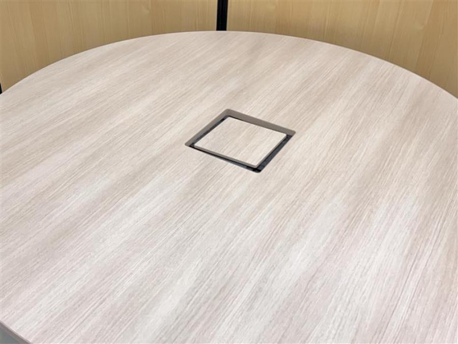 21年製!珍しい仕様のおしゃれな木目調テーブル! ■オカムラ/丸テーブル/スクエアテーブル/φ1200mm/オススメ(おすすめ) /人気商品- 在庫数