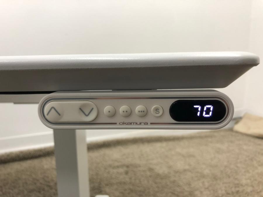 デスクの高さ設定は天板下の上下ボタンを押すだけ。