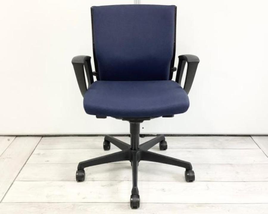 【関西倉庫在庫】■オカムラ(okamura)製 エスクードチェア 肘付ローバックチェア ■ダークブルー×グレーシェル ■デザインアーム ■ランバーサポート 【弊社使用欄:A01029268】