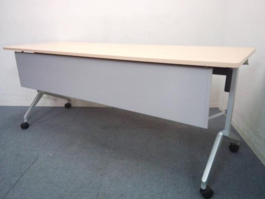 【会議・研修室などに・使わないときは畳んで省スペース!】■コクヨ(KOKUYO)製 リーフライン(Leafline)シリーズ サイドスタックテーブル フラップテーブル W1800×D600㎜ ■木目ナチュラル天板 ■幕板付き 【2~3名での使用に最適】