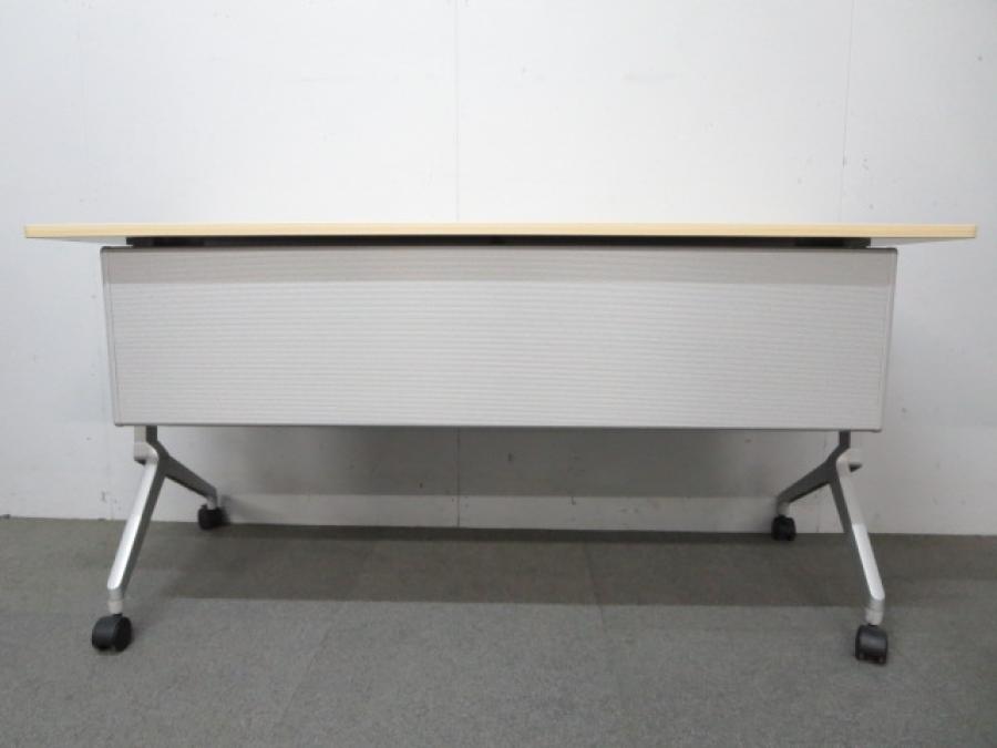 【2024年製!綺麗な状態です!】コクヨ リーフライン サイドスタックテーブル 木目ナチュラル 幕板あり 会議机 収納 折り畳みテーブル セミナー用 福岡 中古家具 安い 九州最大級《オフィスバスターズ福岡博多店は、福岡を拠点として、日本全国へ中古オフィス用品・オフィス家具を提供しております》
