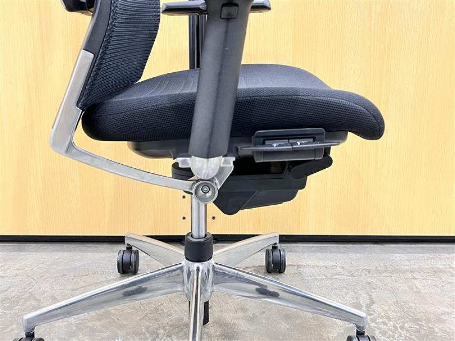 - 座る人の体格に合わせて、シート奥行きは前後54mm、高さ100mmの調整が可能です。また、調整レバーを座面シートの側面に設けることで、座ったままの姿勢で操作することができます。