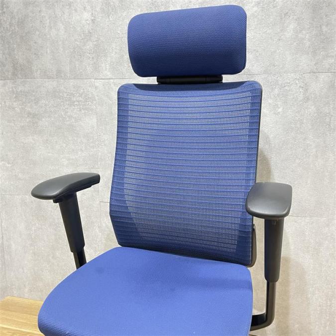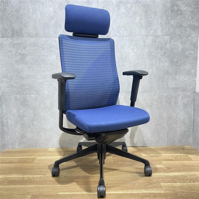 【在庫入替セール】【5脚入荷】【どんな空間にも調和するデザインと最上級の操作性!背面メッシュで通気性抜群!】■オカムラ(okamura)製 コーラル (Choral) 肘付ハイバック ■ミディアムブルー ■メッシュ背面 ■可動肘 ■ハンガー付【K】【T8】