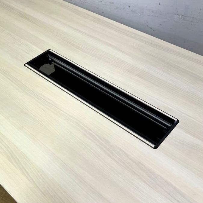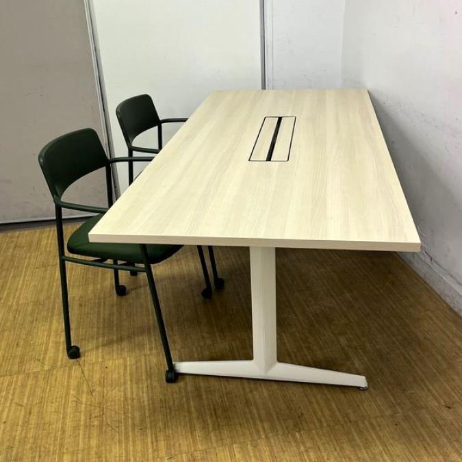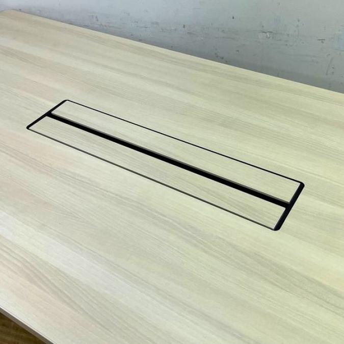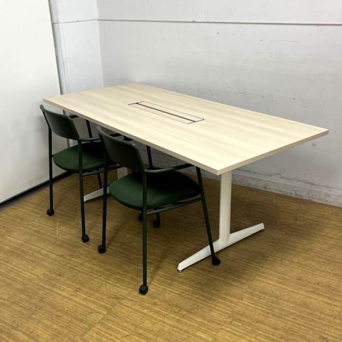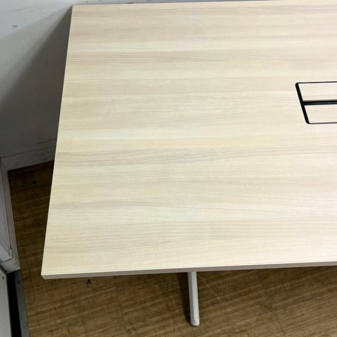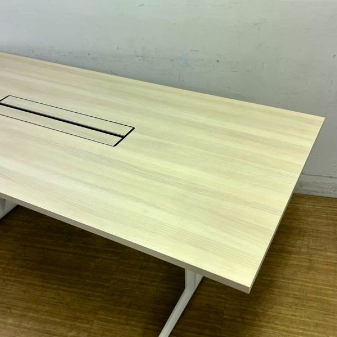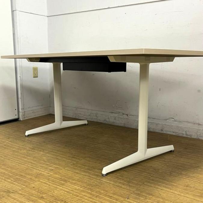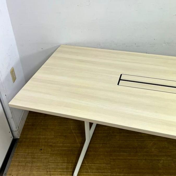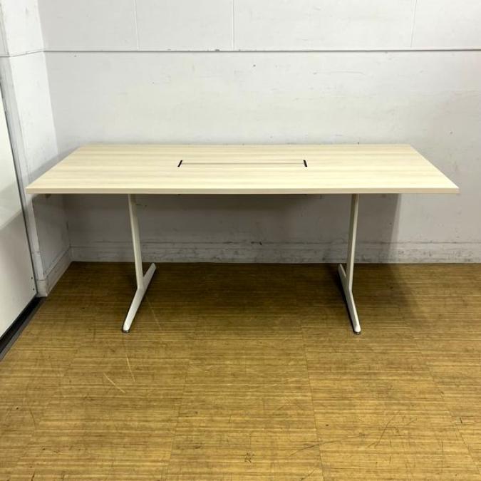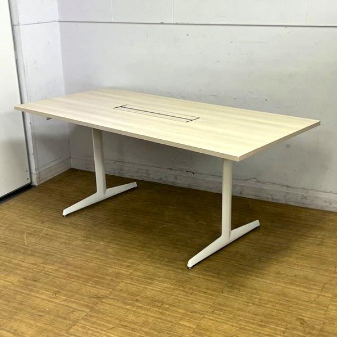 【状態良好】オカムラ ブレスタ ミーティングテーブル 配線孔あり 天板:プライズウッドライト 脚:ホワイト- 名古屋千種店