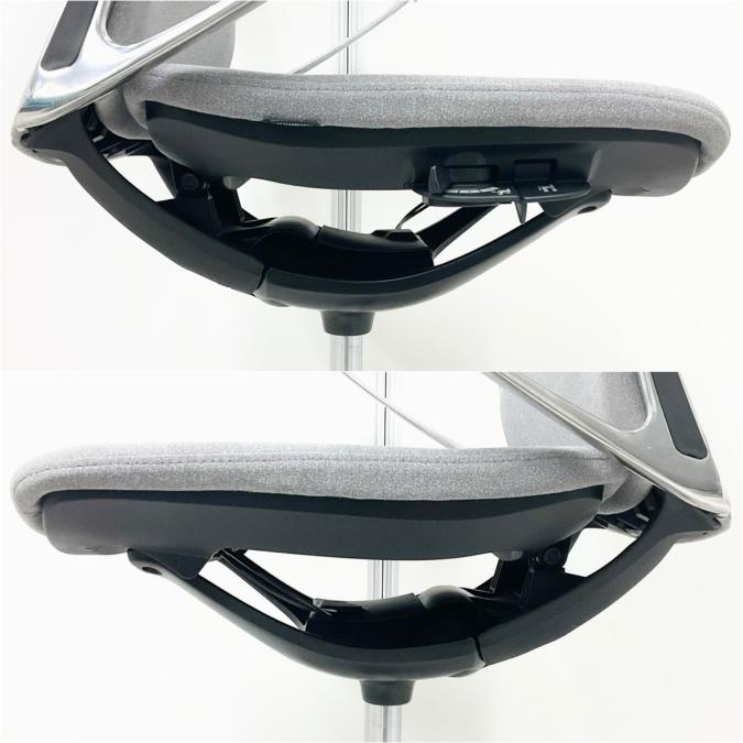 - 座面の高さ調節や背と座がシンクロしてスライドするアンクルチルトリクライニングなど、基本的な調節機能を搭載。