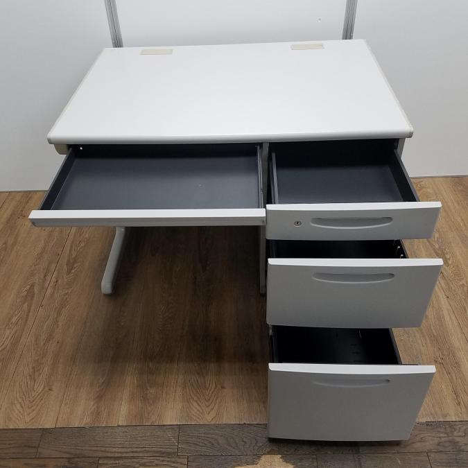 オカムラ製 SD-Vシリーズ ニューグレー W1000サイズ シリンダー 3段引き出し一体型でコンパクトながら圧倒的な収納力! オフィス家具 増員 W1000片袖机!!- 京都東寺店