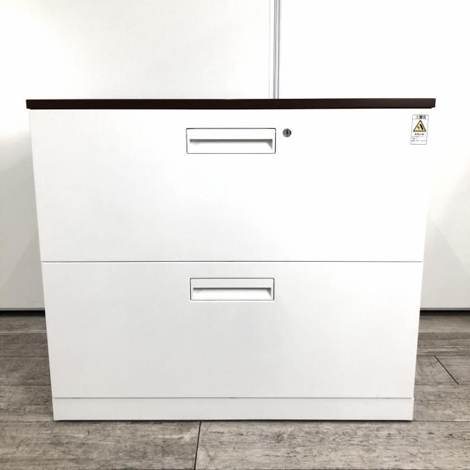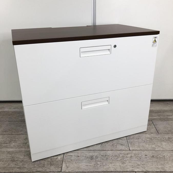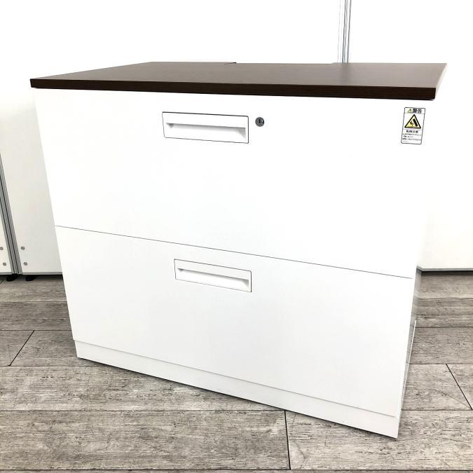 【在庫入替セール品!(本在庫限定価格)】☆壁際・窓際への設置にオススメ! ■コクヨ エディアシリーズ 2段ラテラルキャビネット ブラウン木目天板(D550mm) 配線取り出し口付【省スペースに設置できる!】★- 川崎店