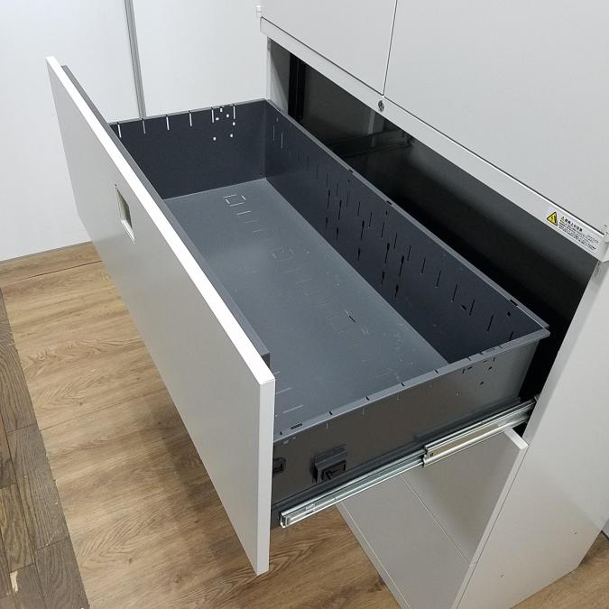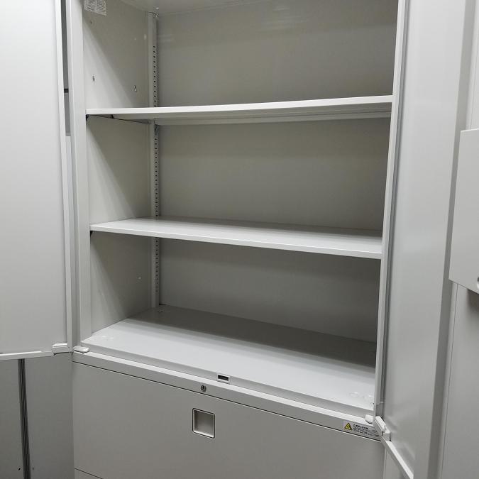 【商品入替のため、残り1台限り】オカムラ製 レクトラインシリーズ グレー シリンダー鍵 ハイキャビネット オフィス家具 使い勝手抜群!観音開き+引出タイプの書庫セットが入荷!書類・備品整理に是非! 書庫セット!!- 京都東寺店