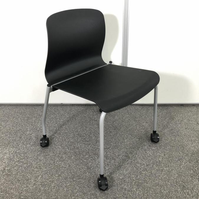 【背の曲線が美しい!人気のスタッキングチェア!キャスター付きで移動も楽々!】■コクヨ製 アリーナC スタッキングチェア ミーティングチェア 肘無し キャスター付き ■ブラック- 豊中・尼崎店