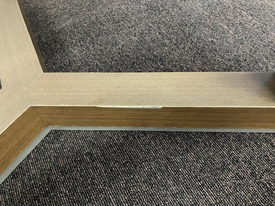 - 目立つ箇所あり傷・凹みが多数、深い傷・凹みが一部ある。(例、天板、幕板、棚板、サイド部分、脚部等にある。)