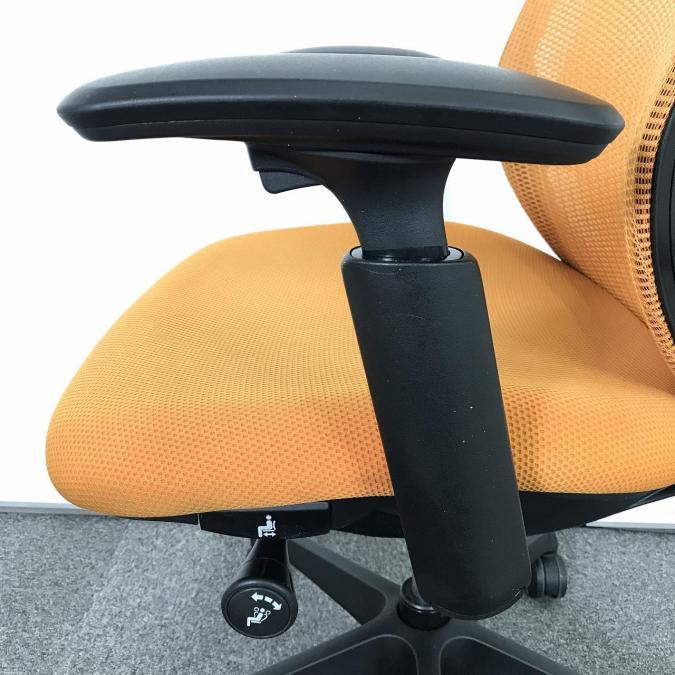 在庫入れ替えセール30%【三次元曲面が身体にフィット・まるで手を添えて包み込まれるような優しい座り心地!】■オカムラ製 シルフィーチェア ハイバック肘付き ■背面メッシュ 可動肘 ■オレンジ (ブラックフレーム)- 池袋店