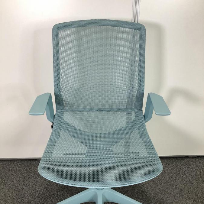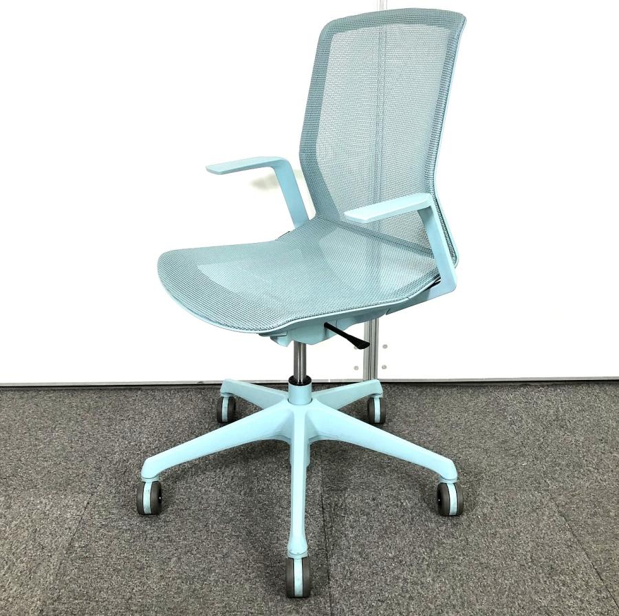【シンプルでスタイリッシュなデザイン!】■オカムラ シナーラチェア デザインアーム付 セージ ホロー(ウレタン)キャスター ※肘キズあり【OKAMURA CYNARA】【在庫入替セール品!(本在庫限定価格)】★- 川崎店