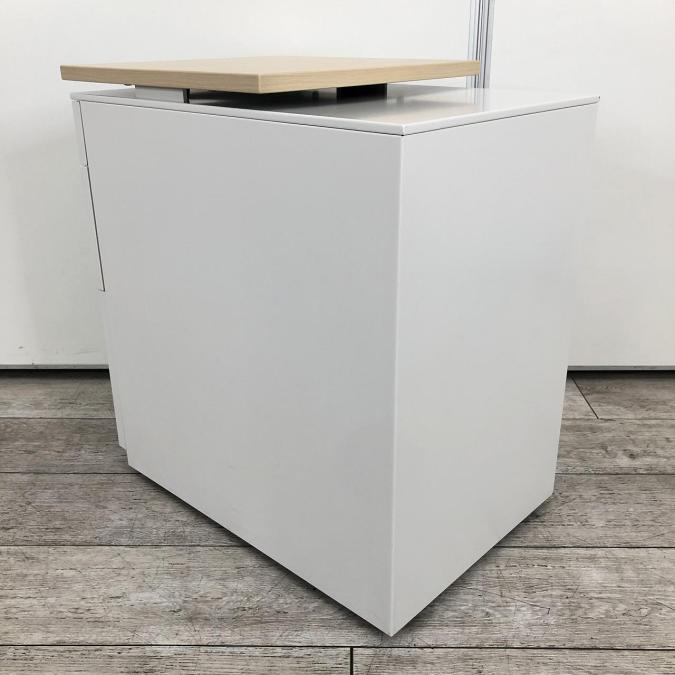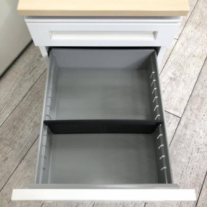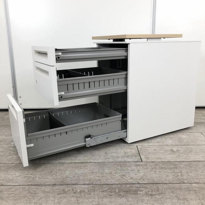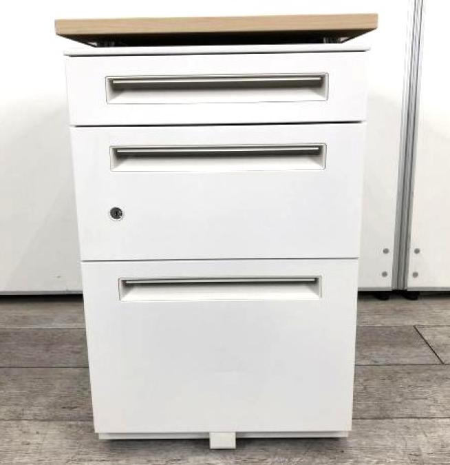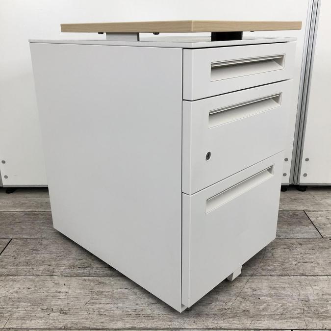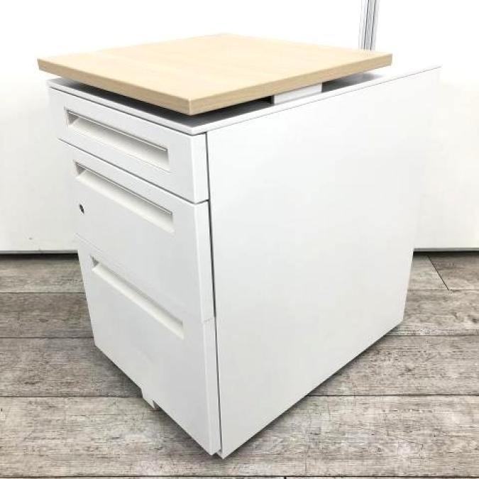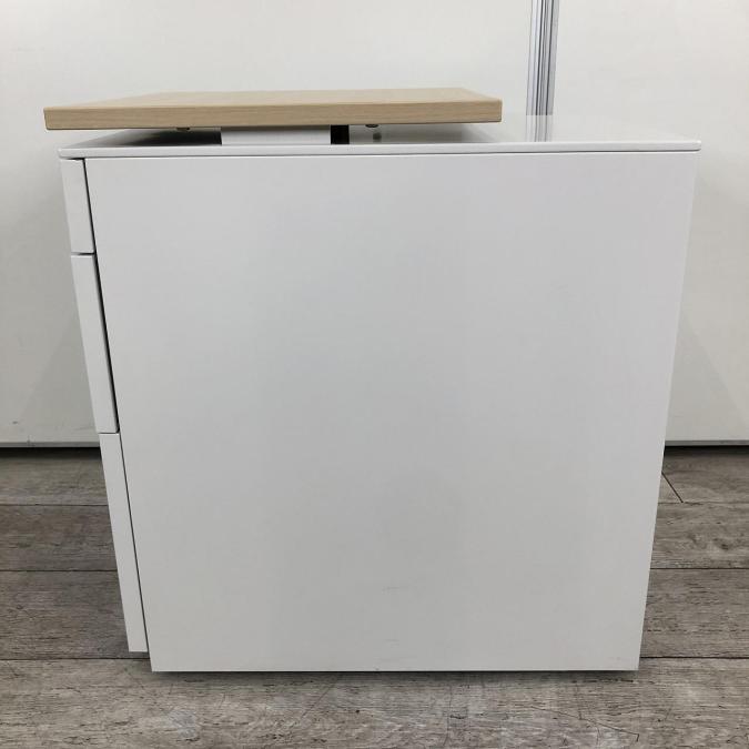 【在庫入替セール品!(本在庫限定価格)】【これは便利!上下昇降する便利な天板付きタイプ!】■ウチダ エスティシリーズ 3段ワゴン ホワイト 木目天板付き ■デスクにあわせてサイドテーブルとしても使えます!- 川崎店
