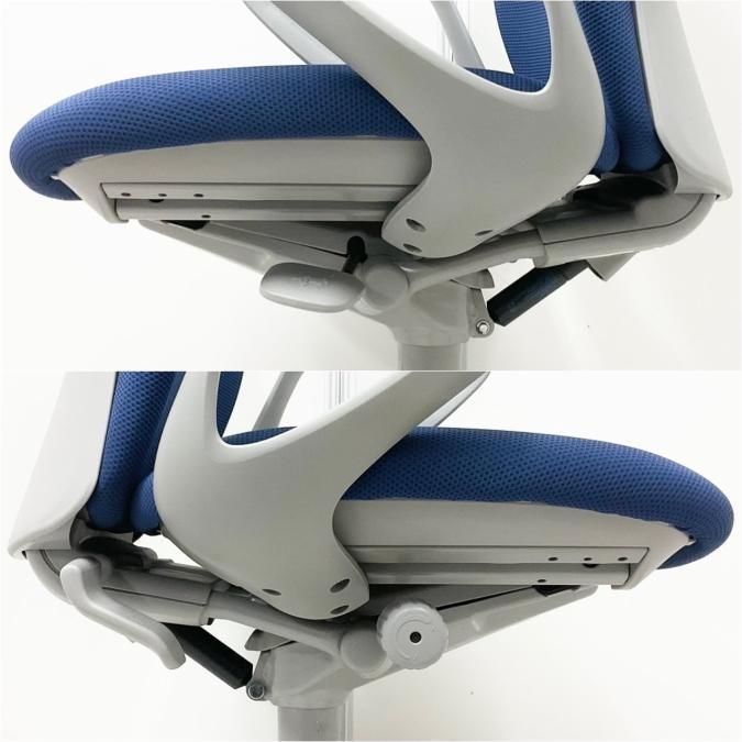 - 角度と反力の強弱が調節可能。さらに、アンクルチルトリクライニング搭載で座面が背もたれと連動してスライドするので快適です。
