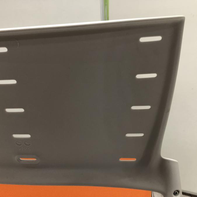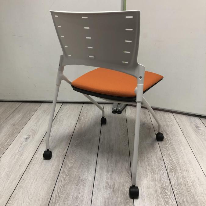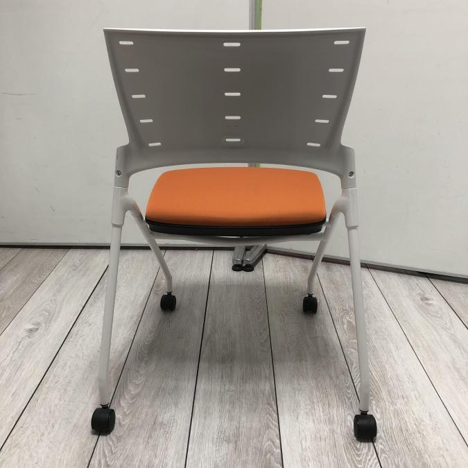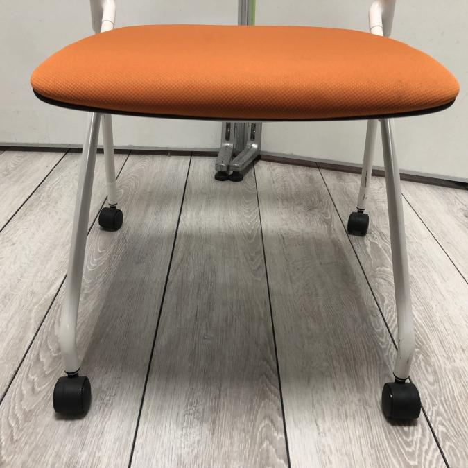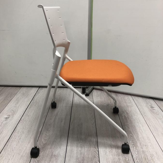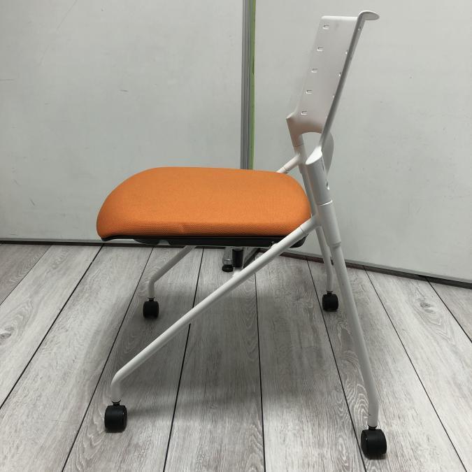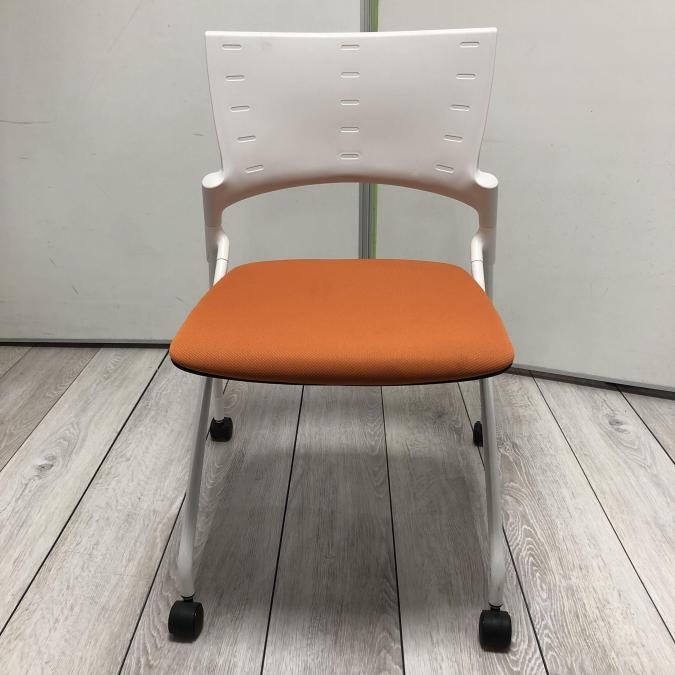 【6脚入荷】【平行ネスティングで省スペース化!キャスター付でスイスイ動かせる!】■イトーキ(ITOKI)製 マノスチェア(MANOSS)■肘無し キャスター付 ■アンバーオレンジ×背シェル:オフホワイト- 神戸・三宮店