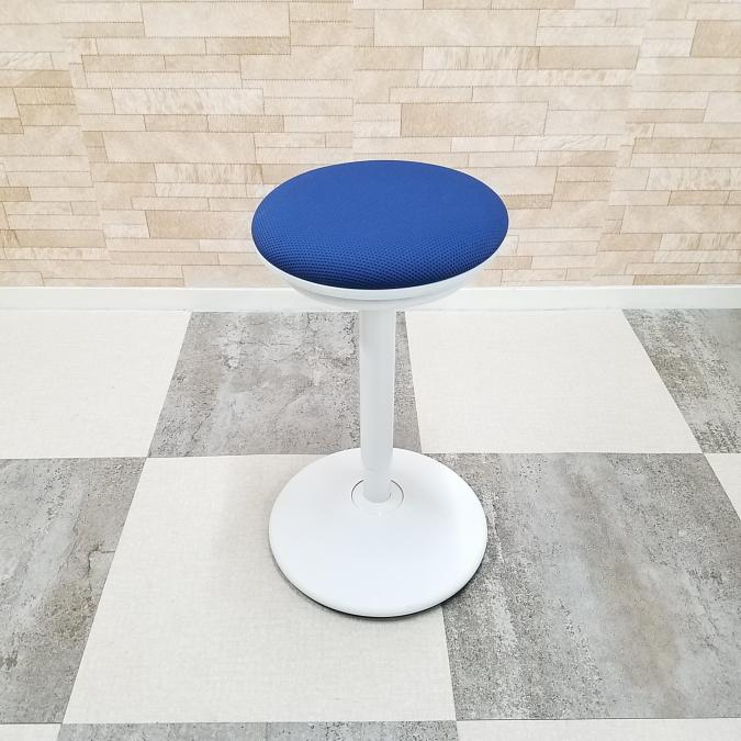 【「座る」と「立つ」のいいとこ取り!】■オカムラ(okamura) ピルエット カウンターチェア スツール ■ブルー シェル:ホワイト【高さ調節可能なパーチングスツール!】- 大阪・堺店