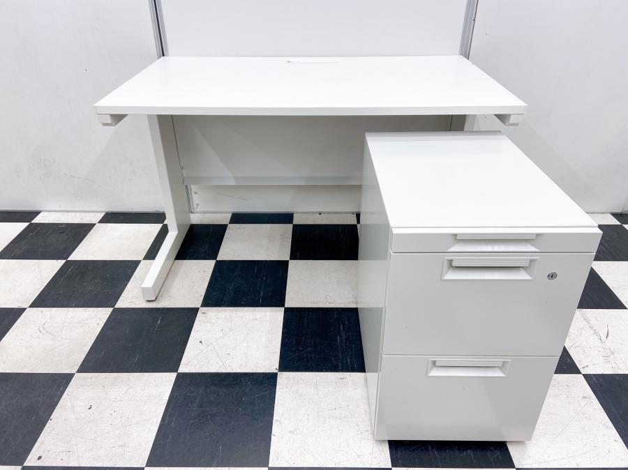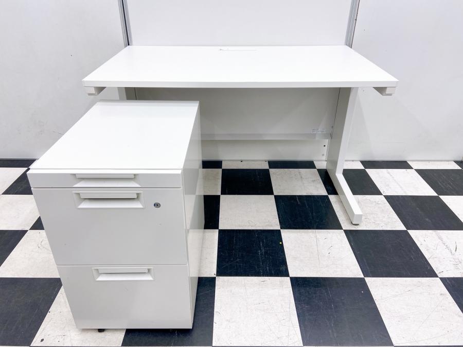 【引き出しつきデスクとワゴンの特別セット!】■内田洋行 スカエナシリーズ デスク+ワゴンセット ■横幅1200㎜×奥行き700 ■引き出しなし ■ホワイト 【中古でお得に買うなら品質の良いデスクを!】 ※ワゴンは在庫状況によって変動致します。
