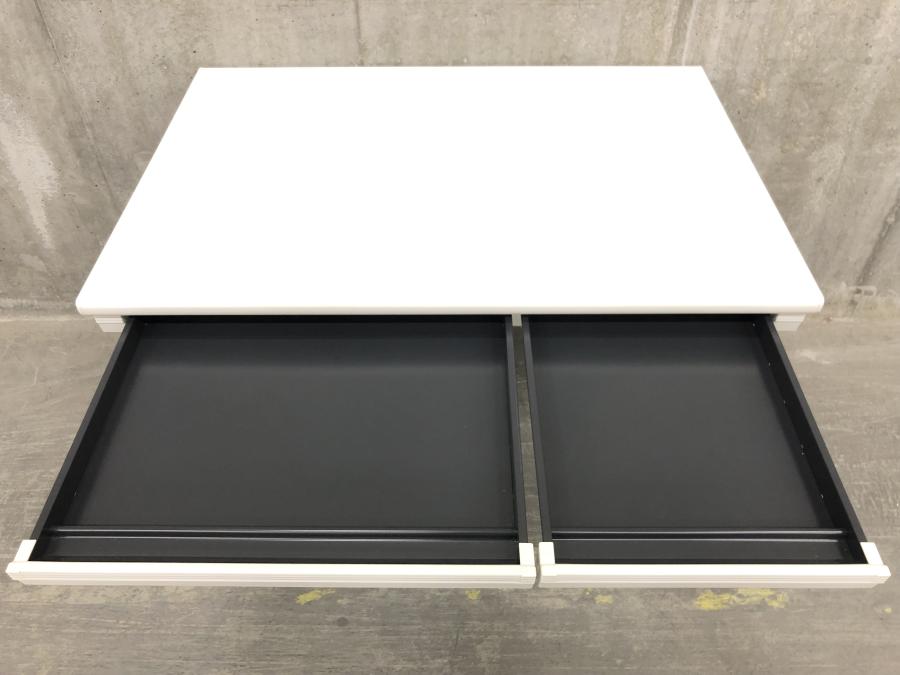 引き出しは薄型のものが2か所ございますので書類の一時保管場所や、筆記具などのちょっとした小物の収納にご活用いただけます!