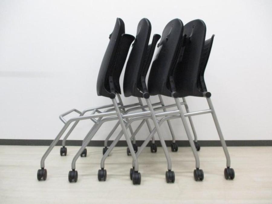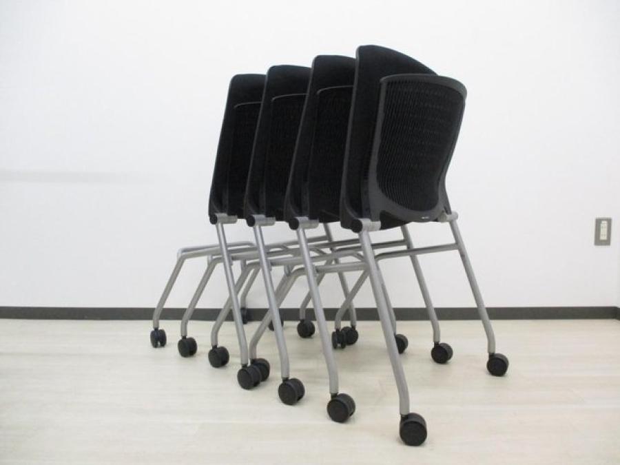 【会議・打ち合わせにおすすめです!】ネスティングチェア オカムラ グラータ ブラック 【使わないときは収納可能!】【AD】