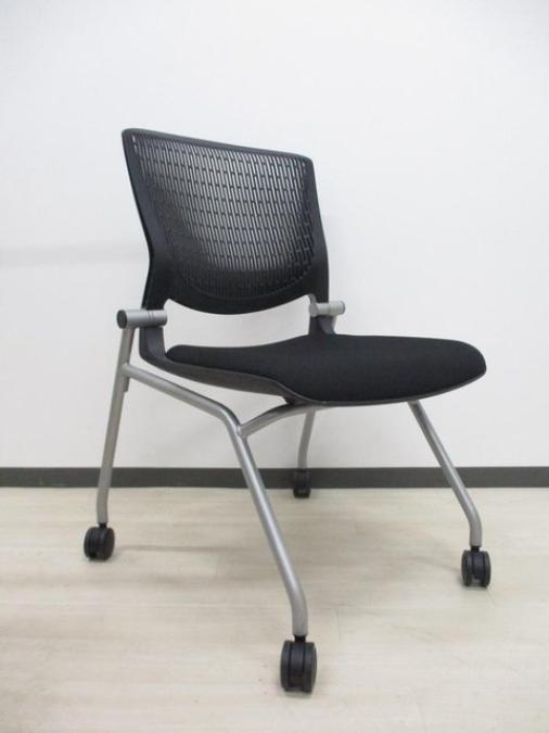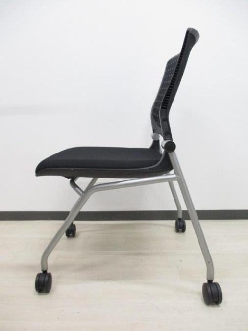 【しなやかにワーカーを受け止める洗練されたデザイン!使わない時は重ねて収納可能!】■オカムラ(okamura)製 グラータ (Grata) 肘無し ミーティングチェア ネスティングチェア ■背面樹脂メッシュ/背パッドなし ■座面:ブラック ■キャスター付