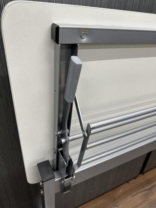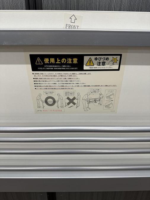 - 一部不具合あり天板歪み、アジャスター無し、キャスター使用不可ようなそのテーブルの本来の効用を果たすための機能以外の一部が使用不可な状態。(例、キャスターロッ ク機能使用不可、棚板無し等がある。)