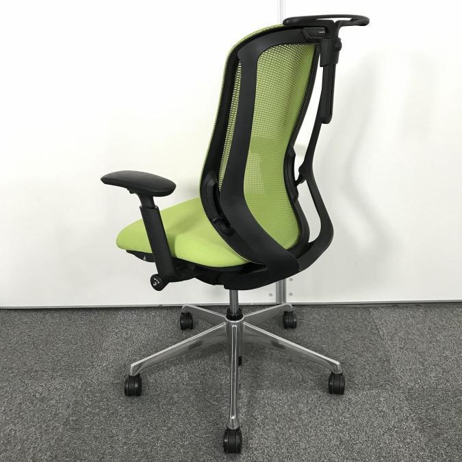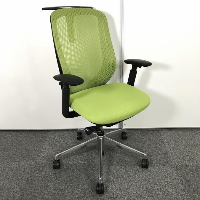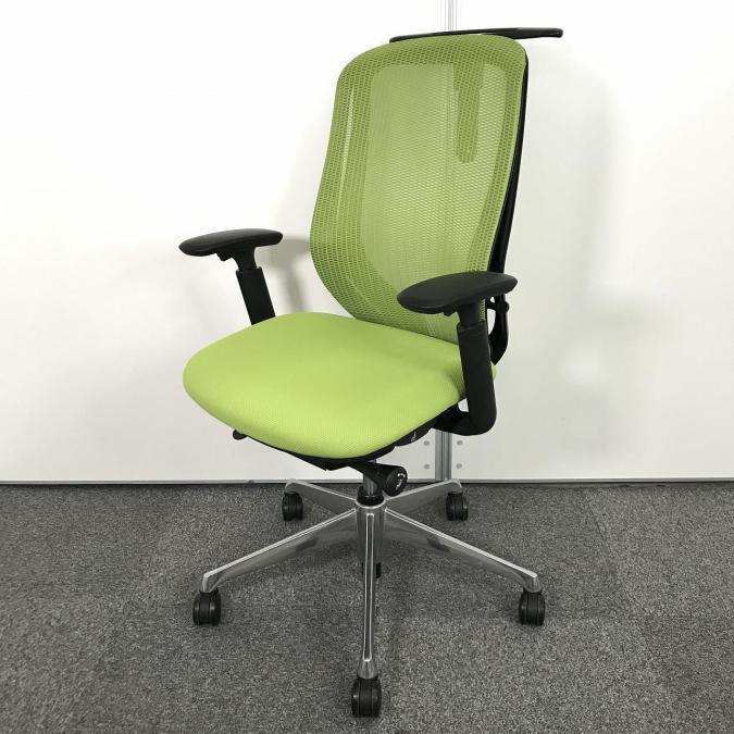 【前傾チルト機能付き!オカムラ製品で最も人気を集める高機能メッシュチェア!】■オカムラ(okamura)製 シルフィ(Sylphy)チェア ハイバック 肘付き ■可動肘 ■ライムグリーン × ホワイトシェル【状態良好品!】