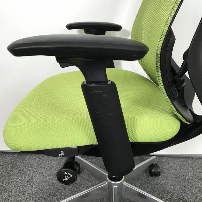 【大人気シルフィーチェア!木目デスクとも相性バッチリなライムグリーンのメッシュチェア!】■オカムラ(okamura)製 シルフィ(Sylphy) 肘付ハイバック ■可動肘 ■グリーン×ブラックフレーム ■ハンガー付 ■メッシュ- 春日部・越谷店