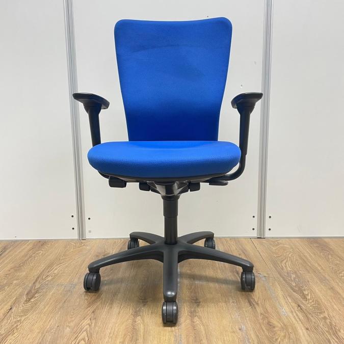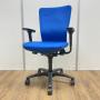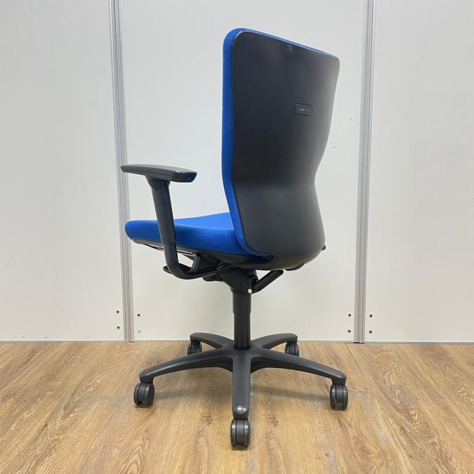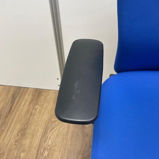 【4脚入荷】【長年愛されるロングセラー商品!厚めのクッションで疲れにくい!】■オカムラ(okamura)製 カロッツァチェア 肘付ハイバック ■サークル肘 ■ブルー × グレーシェル