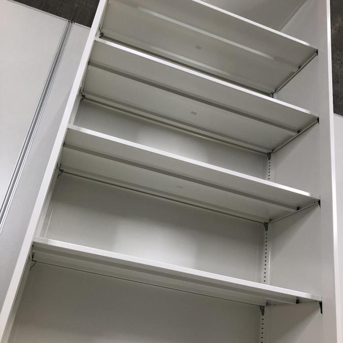 スライド式の扉+引き出しタイプの便利な書庫セットが入荷!使い勝手抜群のハイキャビネットが入荷! ■オカムラ/レクトライン/ホワイト 2枚引き戸+3段ラテラルキャビネット