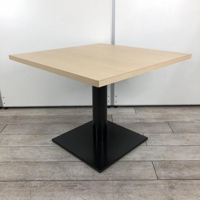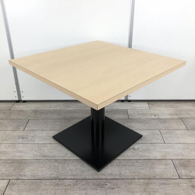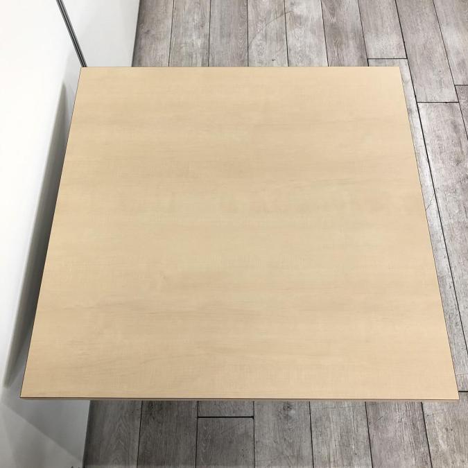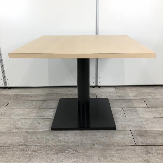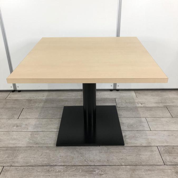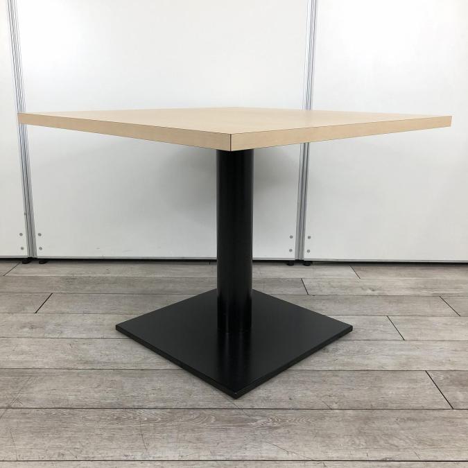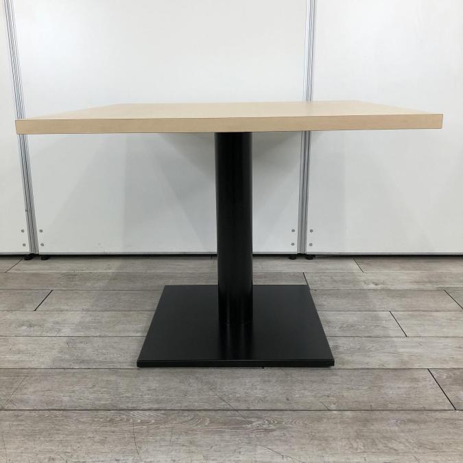 【今流行りの木目調!リフレッシュスペースにオススメ!】 ■カフェテーブル 角テーブル ミーティングテーブル ■木目ナチュラル ■脚:単柱脚ブラック- 足立・葛飾店