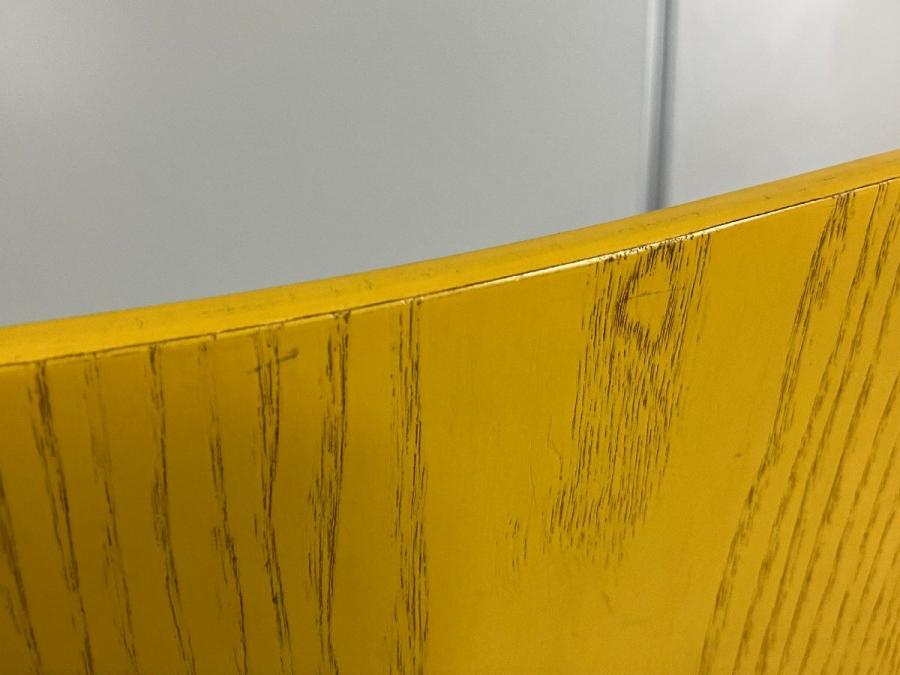 - かなり強い濃い黄ばみ・変色が商品全体にある。(例、座面・背もたれ、脚部等にある。)