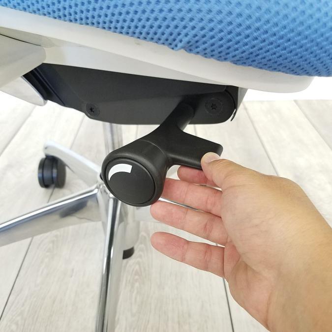 - 座面右下のレバーをスライドさせる「クイックスライドオペレーション」で、リクライニング反力を調整できます。強さの状態が視覚的にわかるため、直感的に操作がおこなえます。