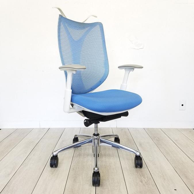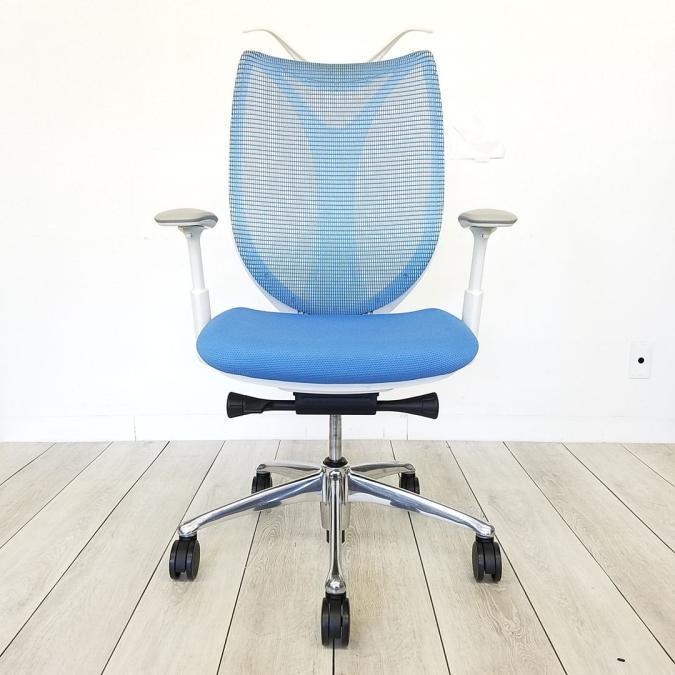 【2脚入荷】流れるような美しいフォルム「サブリナ」入荷!中古 オフィスチェア 高級チェア メッシュチェア テレワーク 在宅ワーク オカムラ ライトブルー アジャストアーム 前傾- 豊中・尼崎店