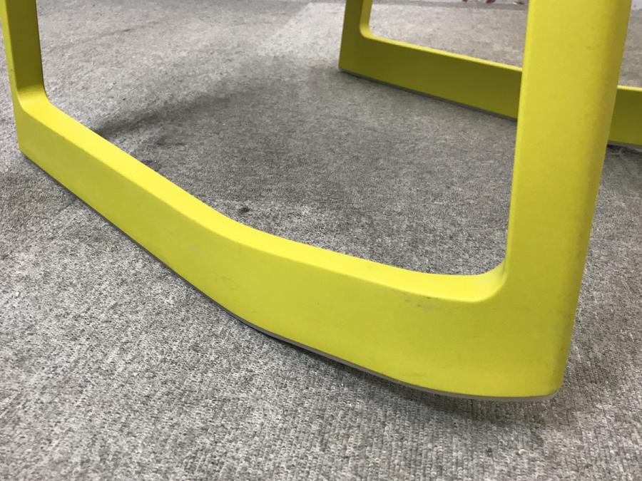 - かなり強い濃い黄ばみ・変色が商品全体にある。(例、座面・背もたれ、脚部等にある。)