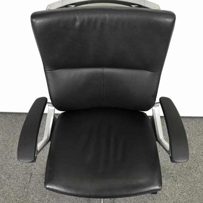 【滑らかで高級感あふれる座り心地が大人気!!】■オカムラ(okamura)製 デュークチェア(DUKE) ハイバック肘付き ■レザー張地 ■固定肘 ■ブラック【弊社使用欄:A01037767】