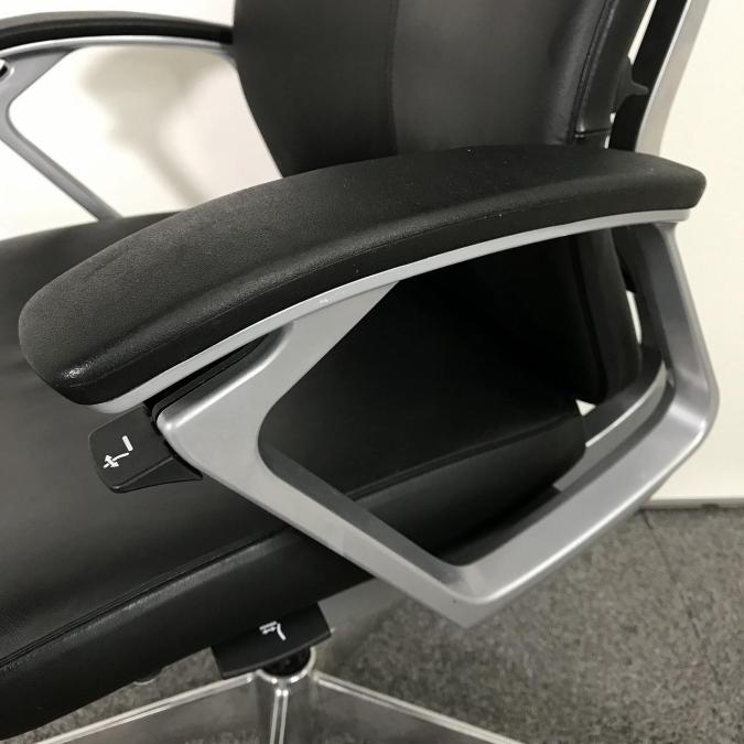 【滑らかで高級感あふれる座り心地が大人気!!】■オカムラ(okamura)製 デュークチェア(DUKE) ハイバック肘付き ■レザー張地 ■固定肘 ■ブラック【弊社使用欄:A01037767】