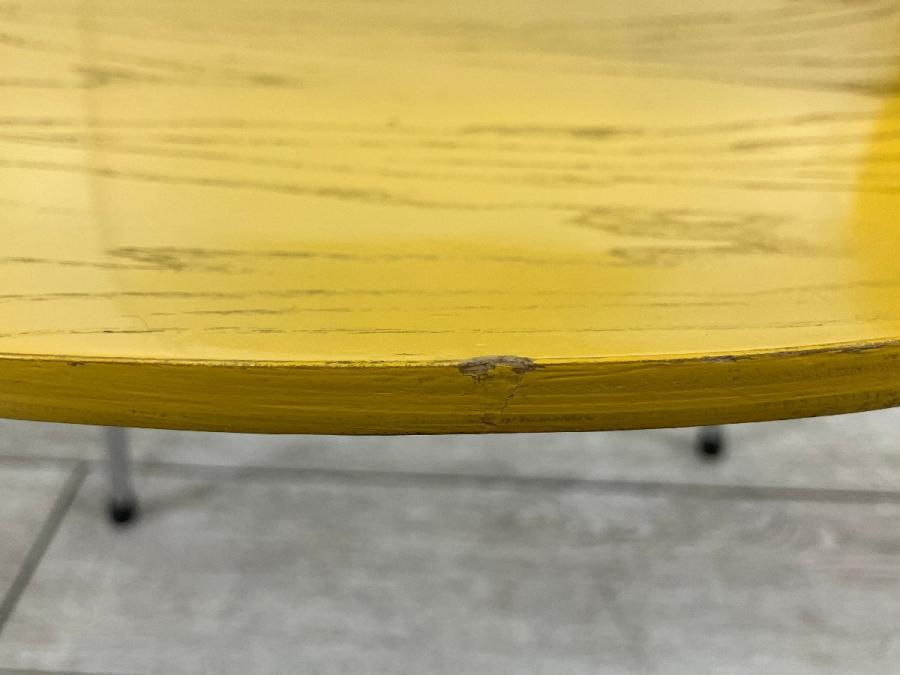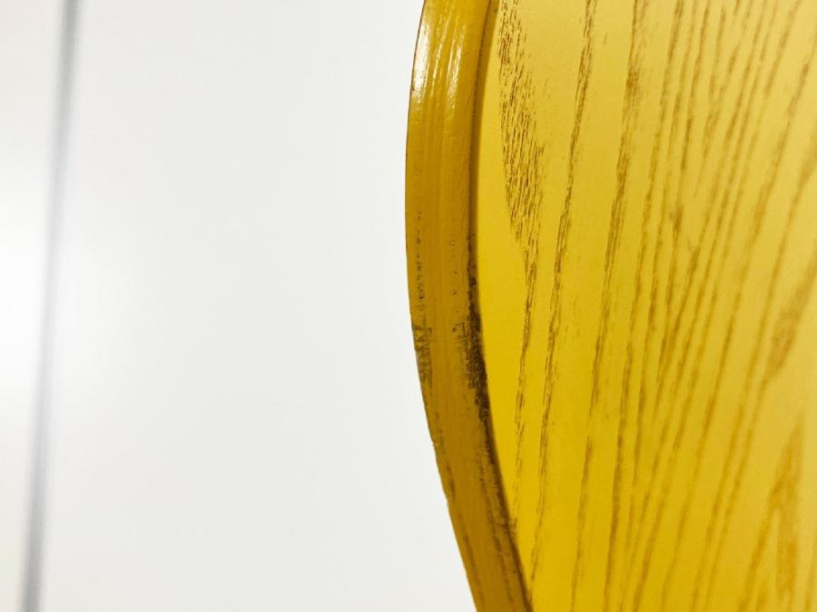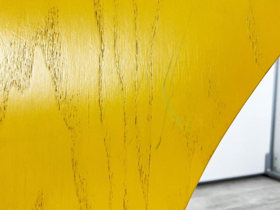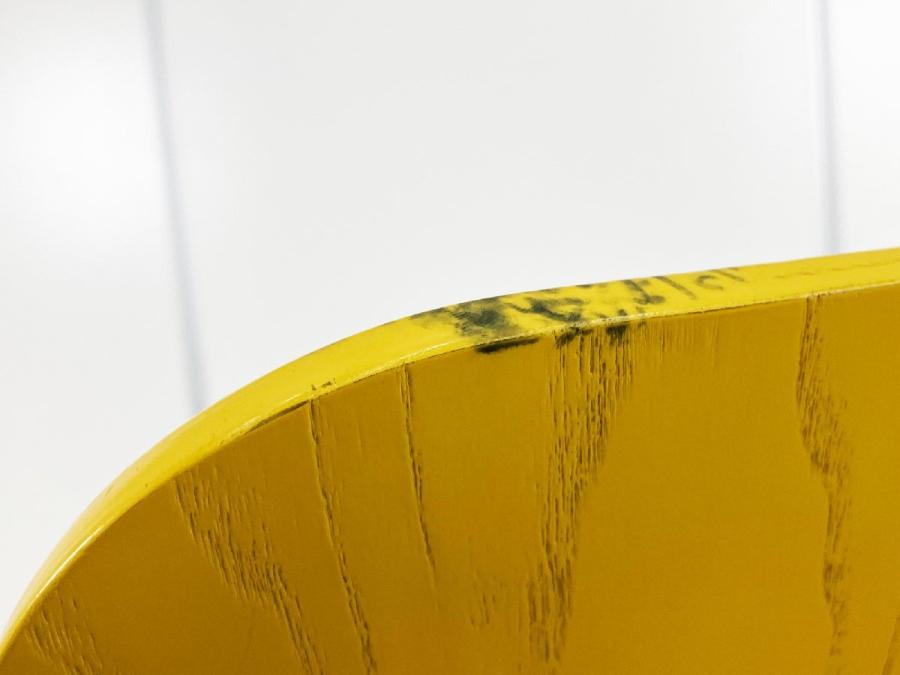 - かなり強い濃い黄ばみ・変色が商品全体にある。(例、座面・背もたれ、脚部等にある。)