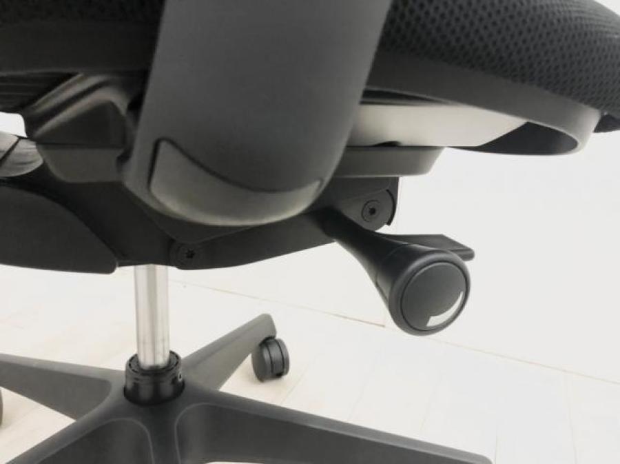 - 座面右下のダイヤル操作で、リクライニングの強弱調整が行えます。これまでのダイヤル式よりも、少ない回転数で、最弱?最強の調整が可能です。
