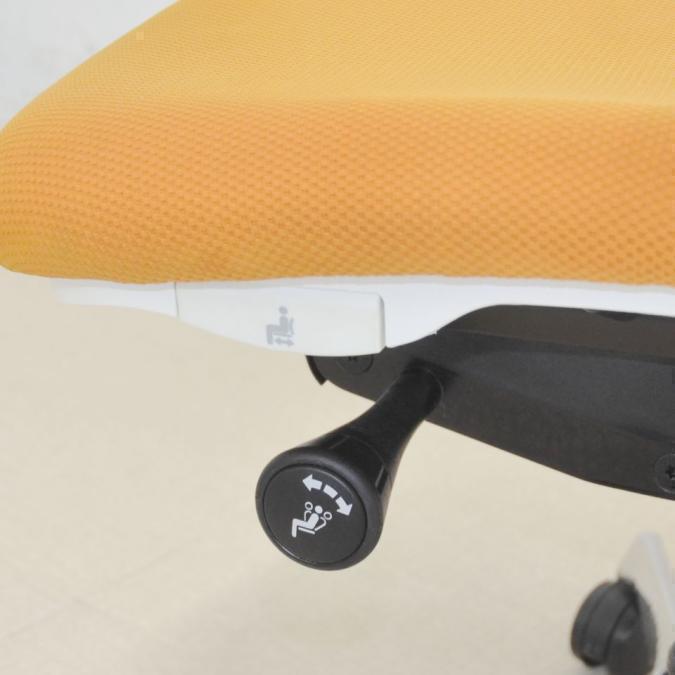 - 座面の左にあるレバー操作により、座面の奥行き調整が可能です。(ストローク:50mm)