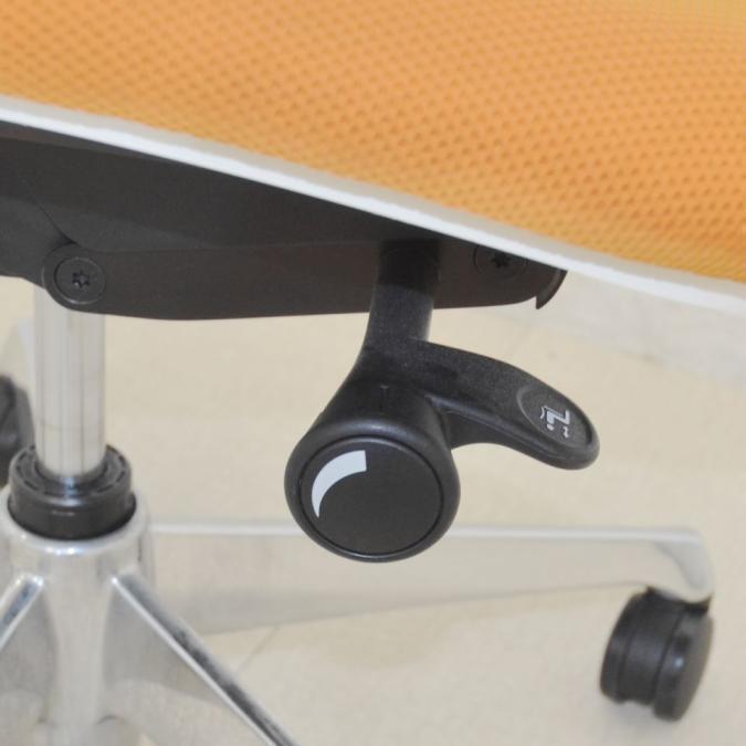 座面右下のダイヤル操作で、リクライニングの強弱調整が行えます。