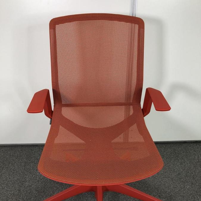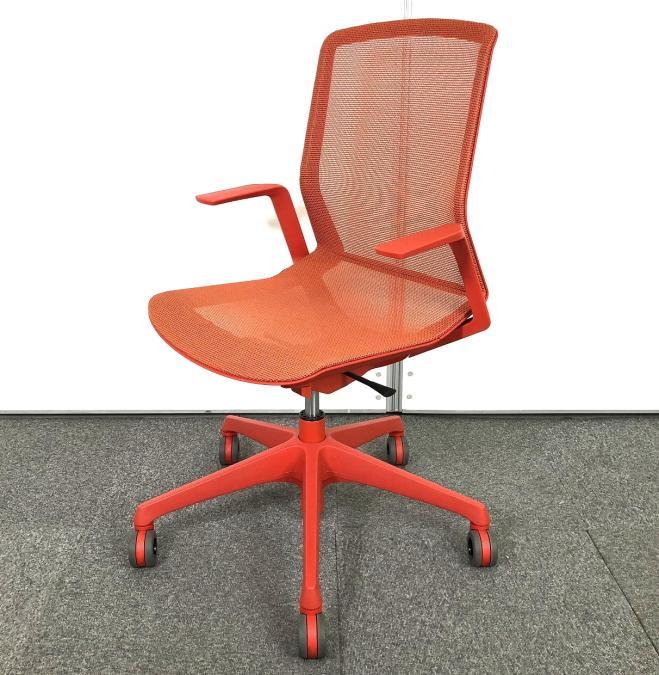 【在庫入替セール品!(本在庫限定価格)】【多様で流動的な現代の働き方をサポート!】■オカムラ シナーラチェア デザインアーム付 オレンジレッド ホロー(ウレタン)キャスター【OKAMURA CYNARA】★- 川崎店