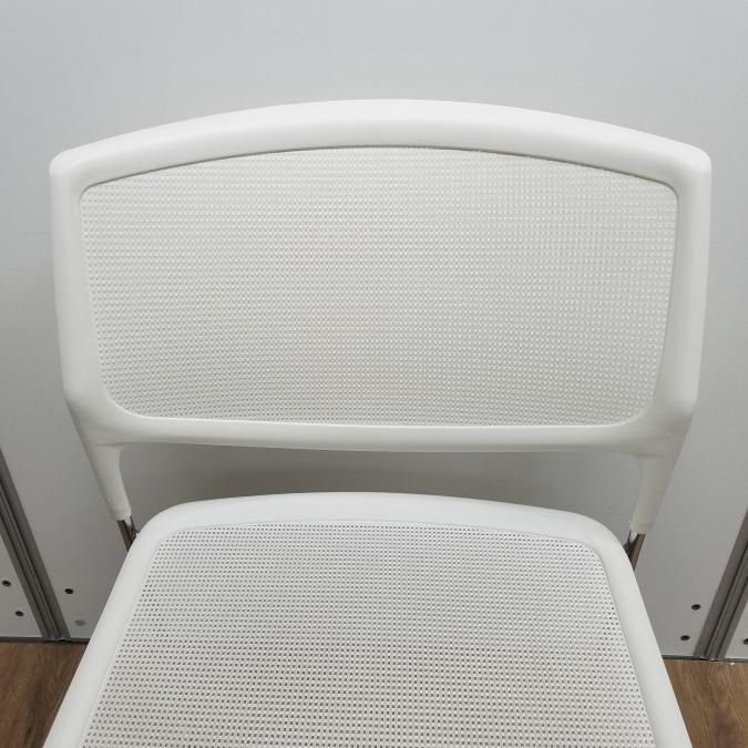 重ねて保管出来てスペースの有効活用に ホワイト 座面メッシュ仕様 スタッキングチェア!!- 京都東寺店