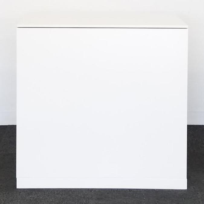 【オフィスの書類をスッキリ整理!取っ手がどの方向からでも開くマルチハンドル!】■オカムラ(okamura)製 レクトラインシリーズ 両開き書庫 ローキャビネット ■本体色:ホワイト ■シリンダー錠 ■ナチュラル天板付き