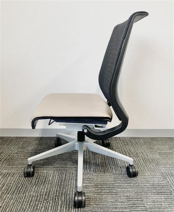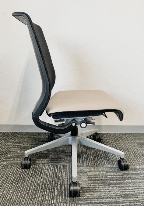 快適な座り心地に不可欠な調節機能である、上下昇降、座面の奥行き調整、リクライニングなどを備えており、操作もわかりやすく好評です。 特に、座面の奥行きは、座面下の左右に通った細いバーで調整でき、座ったままで軽やかに滑るように調整が可能です。 価格面では、新品では高めですが、中古は流通も多く、定価の3割前後の価格で高級チェアの座り心地を手に入れることができます!