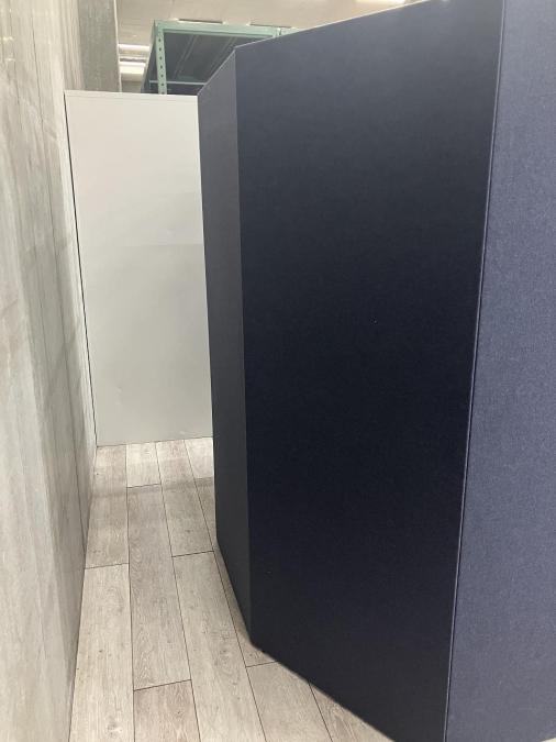 【T10】【商品入替のため、残り1台限り】オカムラ製 ドレープ(drape) ライトブルー × グレー 集中ブース ソロワークブース W1100/D1100/H1920サイズ 天板:高さ720サイズ ワーカーの集中を高める省スペースなワークブース! 1人用ブース!!